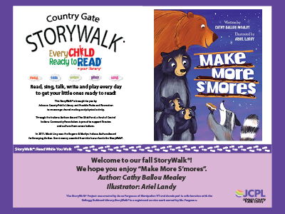 This StoryWalk is located at the Trafalgar Branch of Johnson County Public Library. Stroll along our beautiful prairie walk while you enjoy the story with your family.
